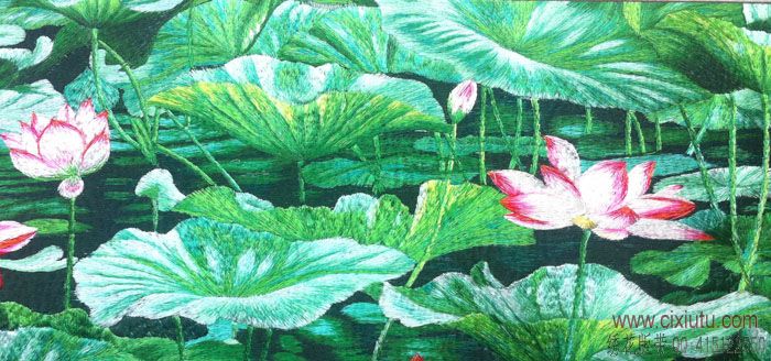 荷塘清韵电脑机绣成品画批发-画芯尺寸125cm*50cm