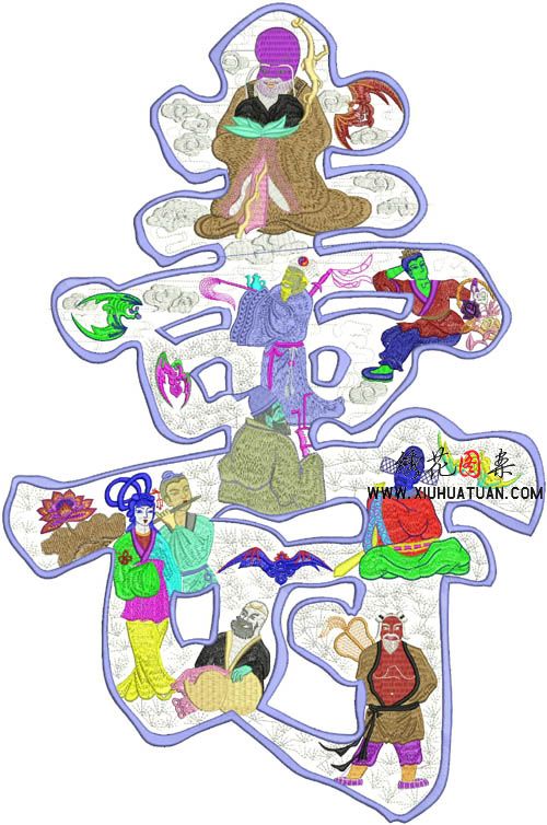八仙贺寿绣花