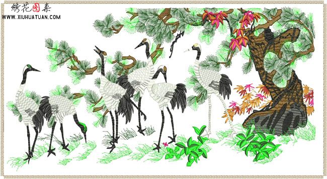 松鹤长春松树凉亭十字绣电脑绣花版...