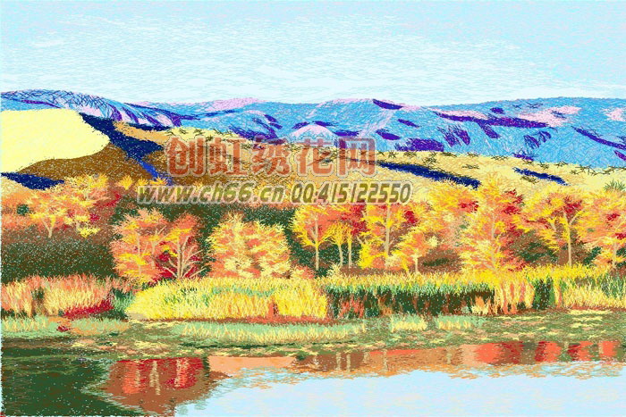 青山绿水电脑绣花乱针绣,机绣乱针...
