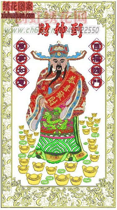 财神电脑绣花花样_恭喜发财贴布刺绣...