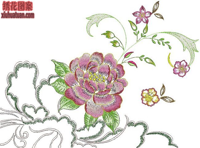 牡丹花刺绣电脑绣花大花EMB花样DST...