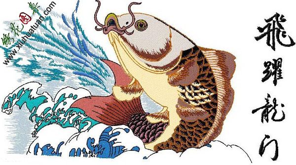 鲤鱼飞跃龙门图案,电脑机绣DST绣花版,电脑刺绣花样版。