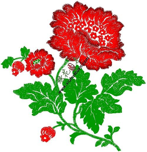 牡丹花电脑绣花刺绣图案,绣花机花样版
