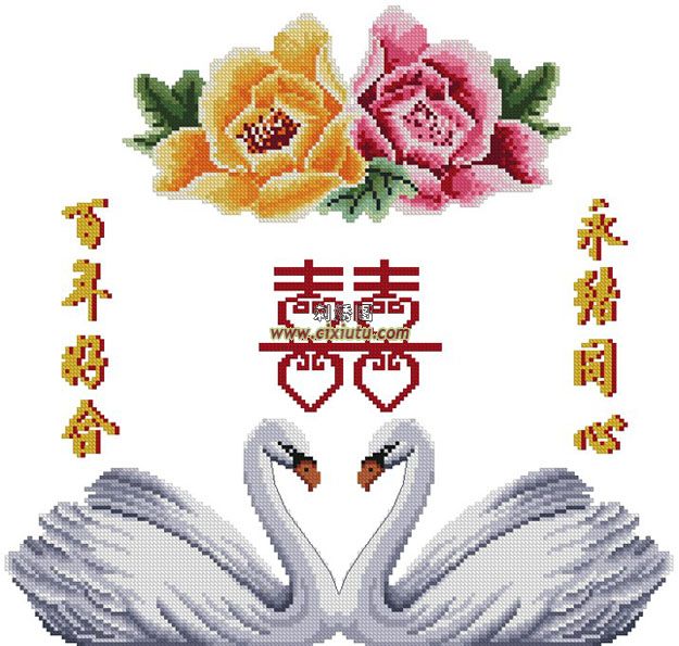 十字绣天鹅 百年好合.dst 针数: 76629 颜色:31