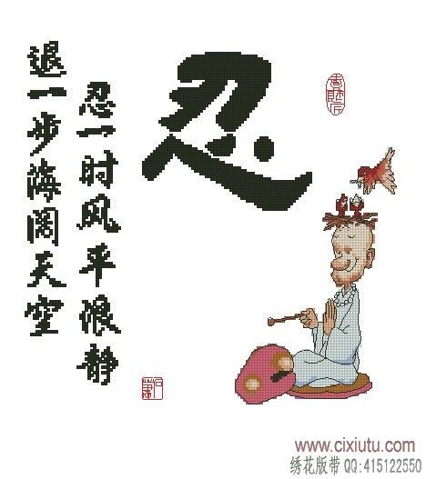 忍字电脑绣花字画_机绣工艺绣花花样...
