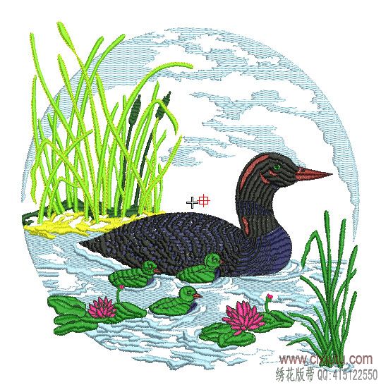 鸳鸯戏水电脑绣花坐垫工艺花样