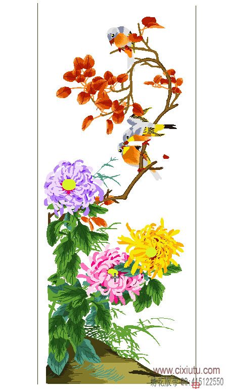 菊-新版梅兰竹菊电脑机绣装饰工艺画