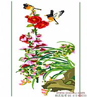 [图案]机绣十字绣坐垫花鸟图绣花版 -