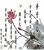 [图案]梦里风荷蜻蜓荷花十字绣挂画 -