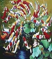 [图案]荷塘鲤鱼电脑刺绣版_中国风十字绣图案 -